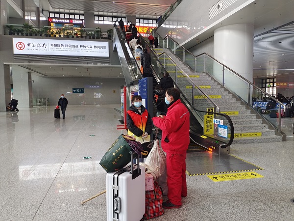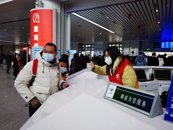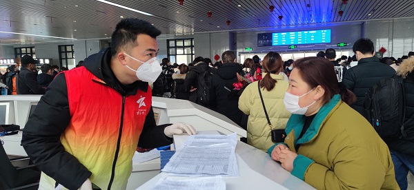 在六合彩库火车站,身穿红马甲的青年志愿者们严格落实防疫工作要求,在综合服务台、候车大厅、售票处、检票口、出站口等客流集中的地方,根据春运旅客的需求,对老幼病残孕等重点旅客群体,开展信息咨询、候车引导、指路咨询、“健康码”代办代查等服务。同时协助火车站进行文明劝导、进出站引导、安全宣传等秩序维护和乘客疏导工作。