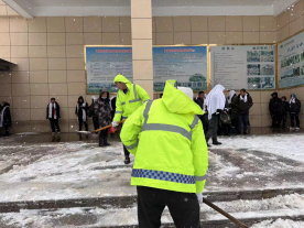 在铲雪过程中,大家不约而同的迎着寒风,手握扫把、铁锹,躬着身子,清理道路,并且将路面撒上工业盐,防止道路结冰。天气虽寒,却不能阻挡那一颗颗炽热的心。