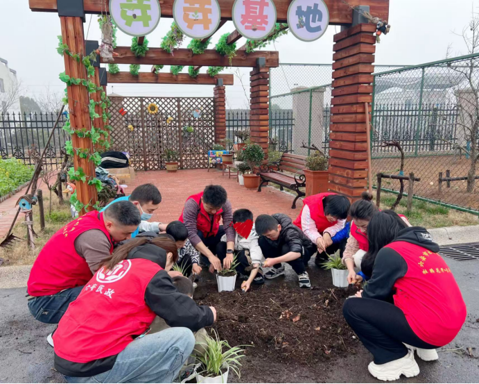 早春三月,草长莺飞,为深入学习贯彻习近平生态文明思想,牢固树立“绿水青山就是金山银山”理念,大力弘扬志愿服务精神,3月12日,六合彩库社会福利院青年理论学习小组带领院内儿童开展“‘植’此青绿 共‘树’未来”植树节暨学雷锋志愿服务活动。