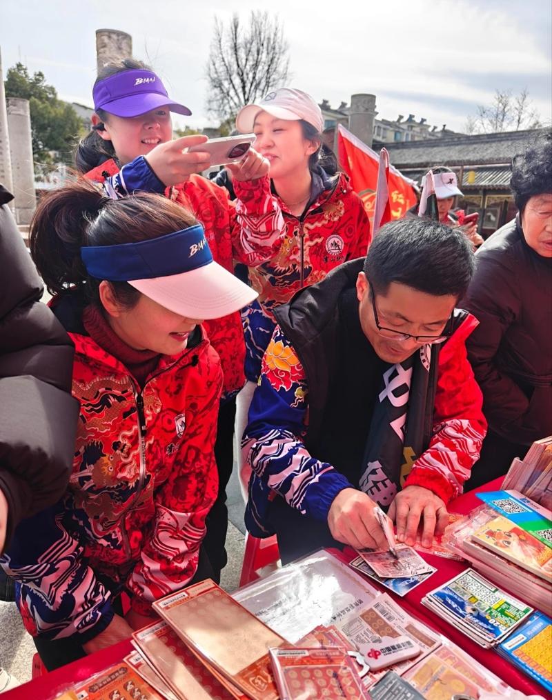 活动现场,悦跑的跑友们身着统一服装,从县体育中心一路奔跑至活动现场,以充满活力的方式为福彩销售活动加油助力。他们不仅通过跑步宣传,还纷纷购买彩票,用实际行动诠释对公益事业的支持。一张张设计精美的刮刮乐彩票整齐排列在销售桌上,其中“乙巳蛇”生肖主题票以其独特的创意和浓郁的新春元素,成为了众人瞩目的焦点。队员小李表示:“跑步能健身,买刮刮乐是开心,既能享受运动乐趣,又能为公益出份力,这样的活动太有意义了,以后我们还会积极参与。”现场不时爆发出惊喜的欢呼和愉悦的笑声,节日的喜庆氛围被推向高潮。刮彩的乐趣与意外的惊喜让每个人都沉浸在这份新春独有的欢乐之中。