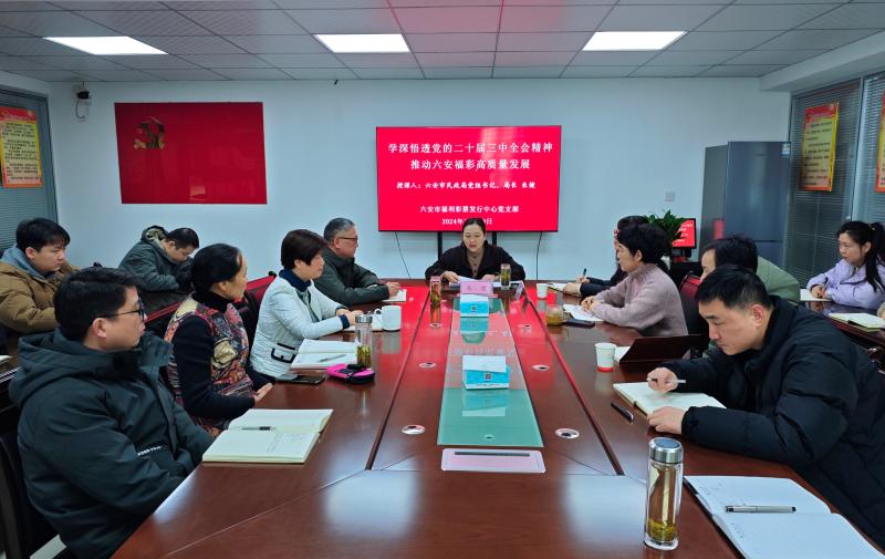 为深入学习贯彻党的二十届三中全会精神,指导党建联系点日常党务工作 ,12月30日上午,六合彩库(中国)官方网站 党组书记、局长朱健赴党建联系点——市福彩中心党支部,以《学深悟透党的二十届三中全会精神 推动六安福彩高质量发展》为题讲授党课,教育引导党员干部职工凝聚改革共识,创新工作举措,推动六安福彩高质量发展。