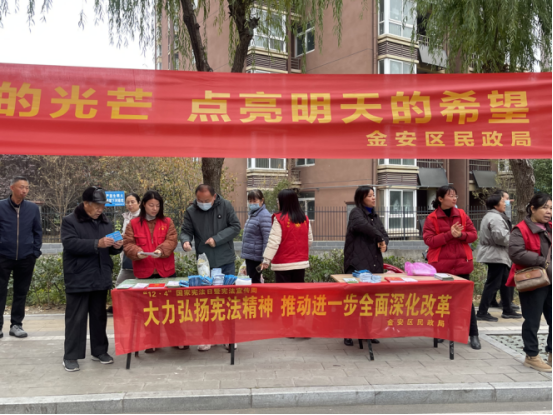 近日,金安区民政局围绕“大力弘扬宪法精神,推动进一步全面深化改革”这一主题,扎实开展“宪法宣传周”活动。